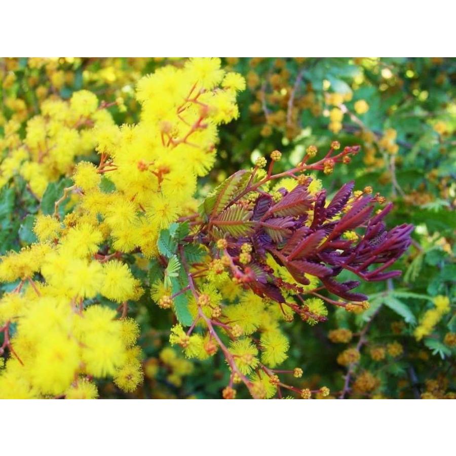 紫色の新芽 金色の花 ギンヨウアカシア プルプレア 樹高1 8m 根鉢含ま