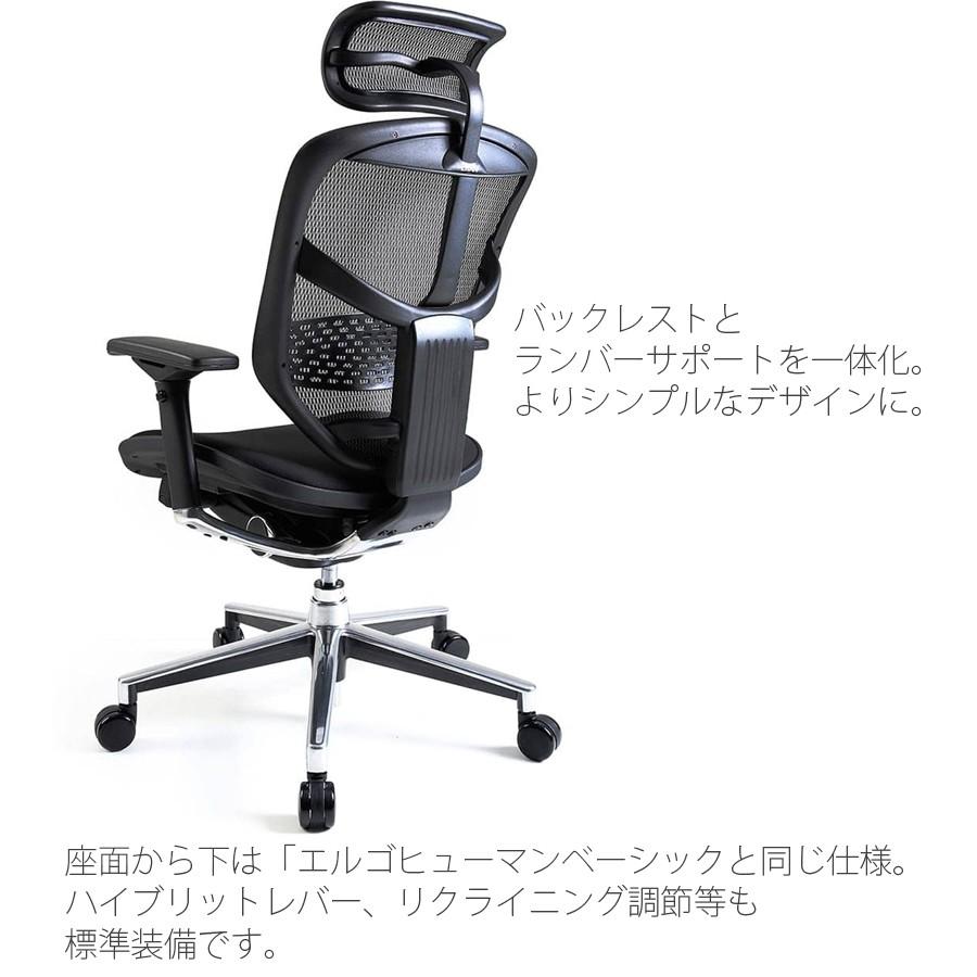 Lohaco エルゴヒューマン エンジョイ ハイタイプ 背エラストメリックメッシュ ブラック 座モールドクッション ブラック ランバーサポート付 1脚 直送品